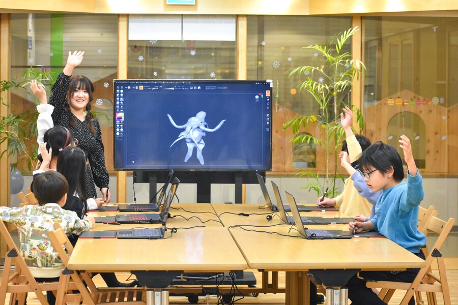 例えば、3DCGで思うように形が作れず悩んでいる子に「最初にしるしをつけてみようか!」と提案したり、発表で言葉に詰まった子に「この子の名前はなーに?」と質問形式で促したりします。
