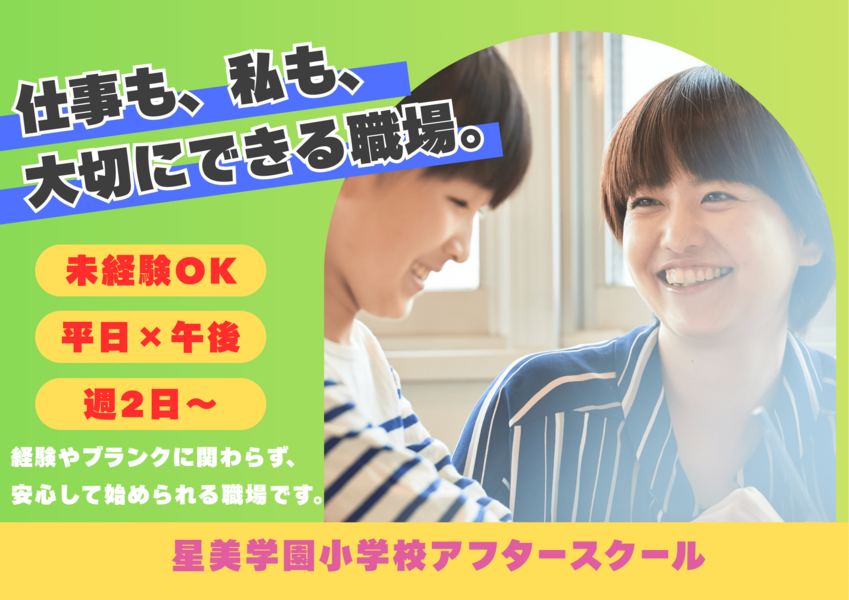 - ≪星美学園小学校アフタースクール≫平日×午後×週2日~/未経験・無資格OK