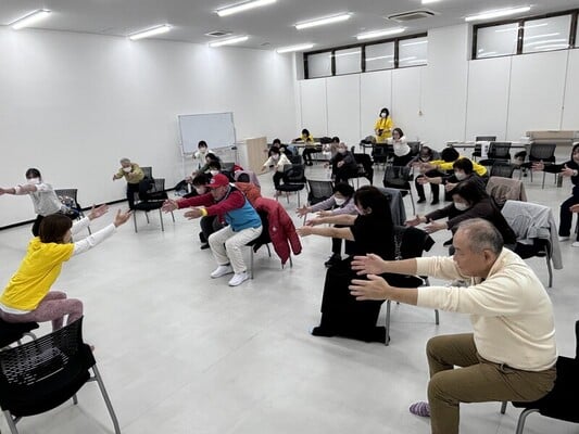 ヨガのレッスンを行なっている市民活動団体の方に講師になって頂き、高齢者でも参加できる椅子ヨガを開催。ヨガレッスン後に、ウエルシア薬局の管理栄養士による栄養講座や、森永製菓さんの大豆プロテインの試飲を行なうことで、高齢者が無理なくできる体力づくりについて、体験しながら学べる講座を実施しました。