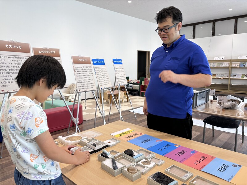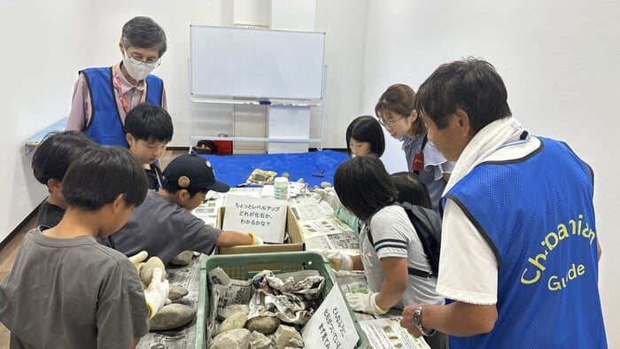 千葉県立中央博物館の出張展示会を開催。ただの展示会ではなく、化石のレプリカを触りながら研究員の方に直接質問が出来たり、チバニアンという地層のガイドを行なっているNPO法人田淵チバニアンズさんにご協力頂き、石を削って化石を探すワークショップを行なったりしました。好評につき、2025年度は2~3カ月に一回のペースに増やして開催を続けています。