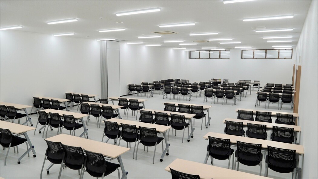 その奥には、60人収容の多目的室が2部屋。2部屋をつなげて120人の大部屋としても利用可能です。