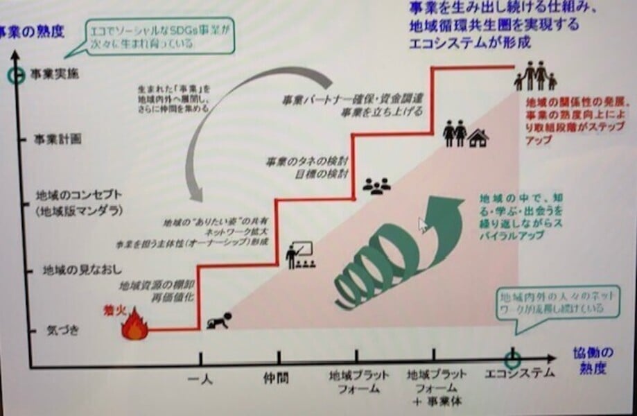 「地域循環共生圏」などの地域間プラットフォーム構築の取り組みにおいて、多様な主体の自発的行動を促し、「0から1を生み出すインキュベーター的支援力」を発揮しています。