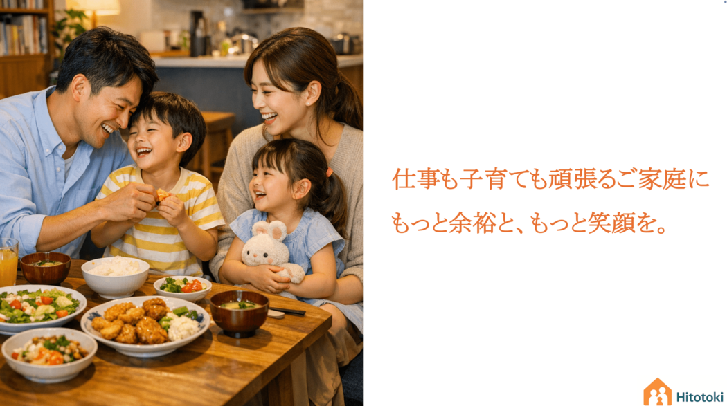 私たちは、共働き家庭を中心に50組以上の子育て家庭にインタビューを実施し、仕事や家事に追われて子どもと過ごす時間を十分に確保できていないことが、生活満足度の低下につながっていることが分かりました。さらに、外食や家事代行サービスといった既存の手段は、金銭的負担や栄養面での不安が大きいだけでなく、外食のために子どもを連れ出すことが忙しい日常の中では難しいことや、家事代行を利用する際の来客準備や自宅に他人を招き入れる心理的ハードルがあることも分かりました。こうした課題を踏まえ、私たちは単なる家事の時短にとどまらず、親子が心に余裕を持ち、安心して共に過ごせる時間と空間を提供することが、生活満足度の向上に不可欠であると考えています。特に、家事の中でも最も負担の大きい「食事」に着目し、準備や片付けの手間を省き、外出せずに利用できる仕組みを集合住宅の共用スペースに整えることで、親子が栄養ある食事を安心して囲み、親子アクティビティを通して、親子がゆったりと関われる環境を実現したいと考えています。