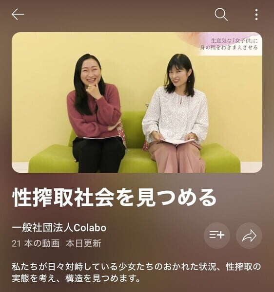 性搾取の実態を告発するYoutube番組「シリーズ キモいおじさん」を開始し、性搾取の実態を当事者の少女たちと共に伝えました。