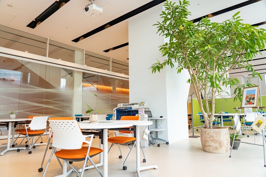 横浜市市民協働推進センターは横浜市庁舎1階にあり、川に面した都会的かつ開放的な空間です。