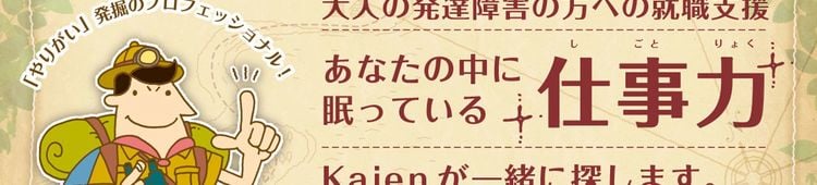 ・Kaienは「発達障害の凸凹の強みを活かす」をミッションに、発達障害のある子どもや大人の"働く力" や "幸福を追求する力" を高める事業を展開している会社です。