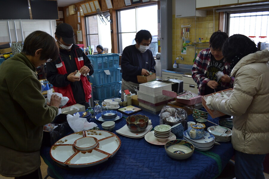値段付けがしやすいように品物を並べていきます