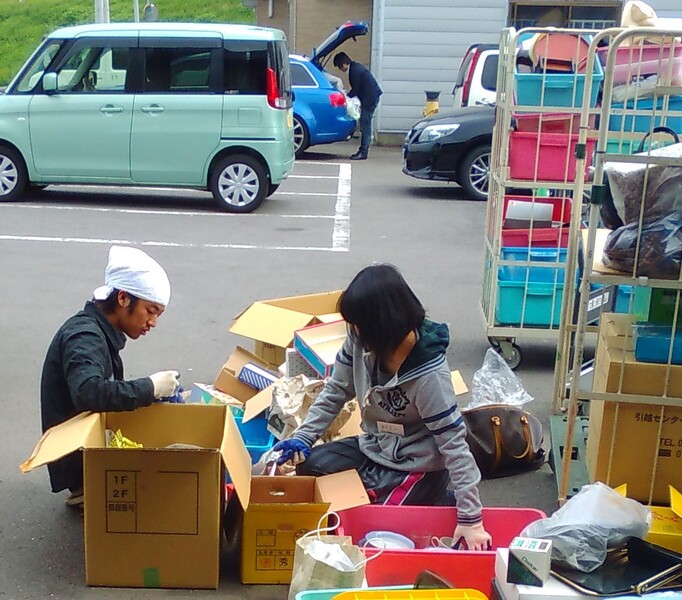 皆様から頂いた品物の仕分け