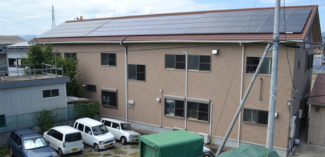 太陽光発電システム:事務局建物(16.02kw)、生活棟(6.48kw)で使用電力を自給自足
