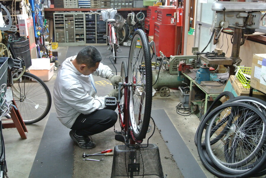 メンバーによる自転車作業 パーツ交換