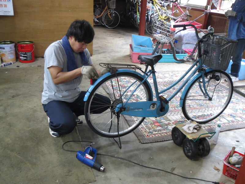 メンバーによる自転車作業 シールはがし