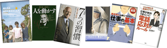 書籍/ビデオ研修(ビジネスマナー、ビジネス基礎)社会人基礎や公私にわたって活用できる知識・ノウハウ をより早く身に着けることがきます。そして貢献活動へ の理解を深めてもらえるように、新人研修はもちろん入 団後も継続的に様々な研修書籍や DVD を用意していま す。