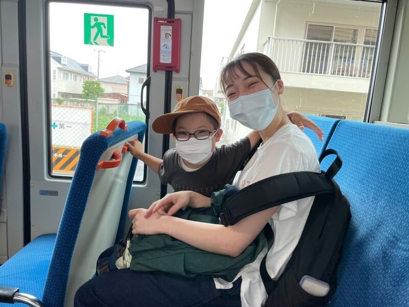 日向(ひなた)ケアサービスでは、子どもから大人まで、障がいのある人のお出かけを支援しています。お出かけを楽しみながら、電車やバスの乗り方を学んでいます。
