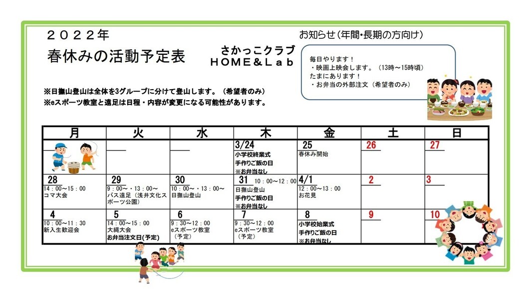 【急募】コロナ禍の子ども達と楽しい春を迎えよう!クラブの有償ボランティア募集!