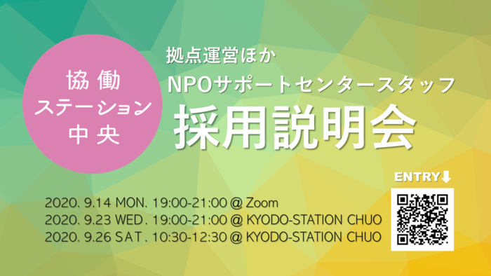 ※協働ステーション中央は、特定非営利活動法人NPOサポートセンターが中央区から委託を受け運営しています。採用はNPOサポートセンター職員としての採用となります。