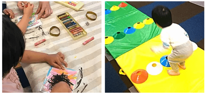 『音楽』『体操』『運動』『ダンス』『芸術』『知育』のカリキュラムで支援を行います。