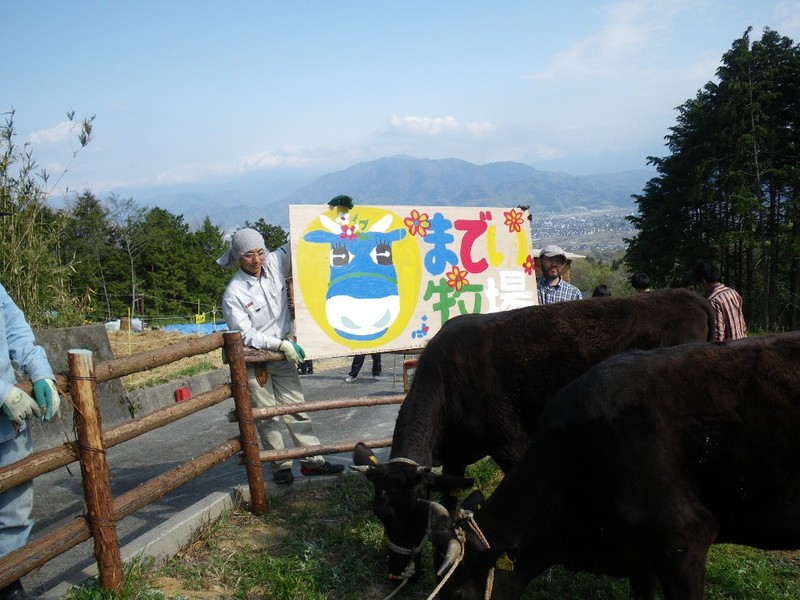 遊休農地を牧場にして、福島県飯舘村からの黒毛和牛を飼育する、南アルプスまでい牧場をサポートしています