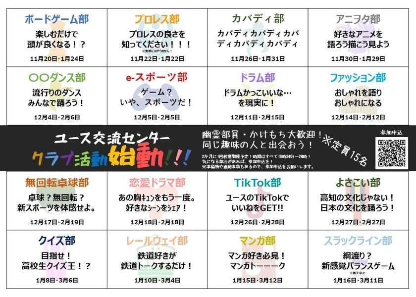 “やりたいをやろう“というキャッチコピーのもとユースセンターでは、様々な中高生の新しい挑戦をサポートしています。
