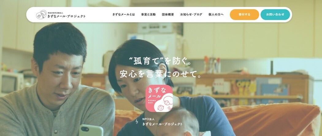 「きずなメール」とは妊娠初期から3歳誕生日までを伴走する情報コンテンツです。NPO法人きずなメール ・プロジェクトは、これを「ゆるやかにつながり続けるセーフティネット」として活用して、「孤育て」(孤独な子育て)や社会的孤立の予防を目指しています。
