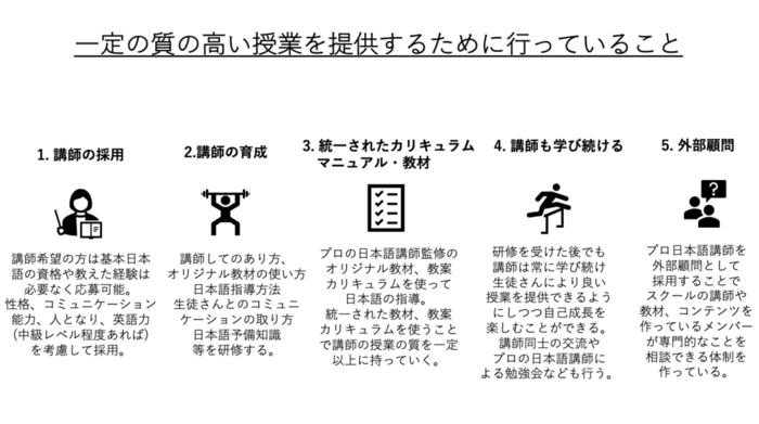 講師の方は10名以上いて、日本語を教えたことがないところからスタートした先生もたくさんいます。