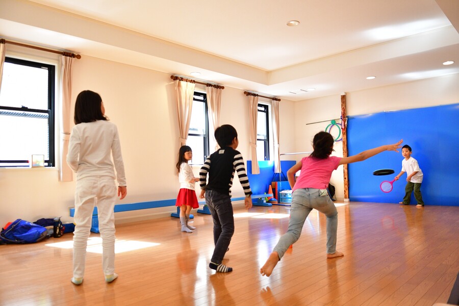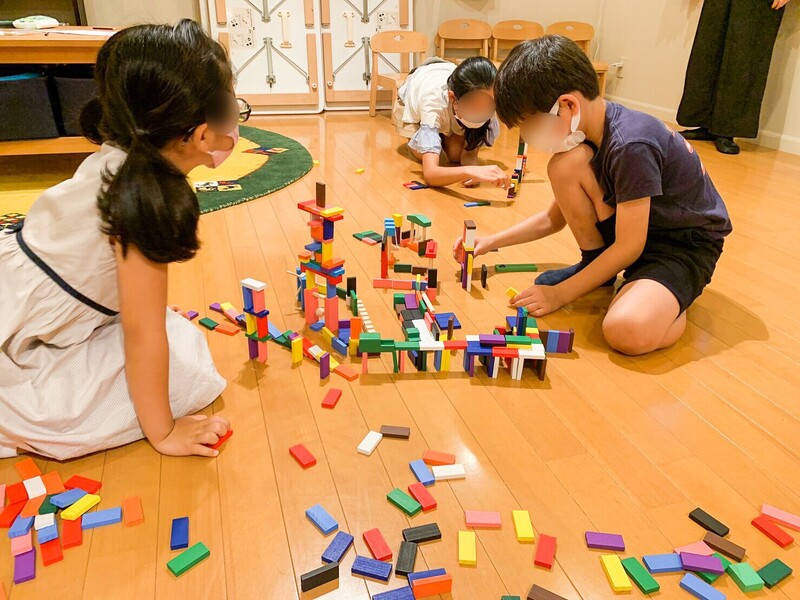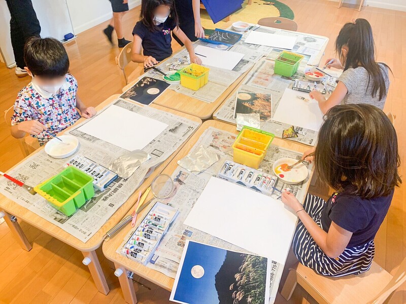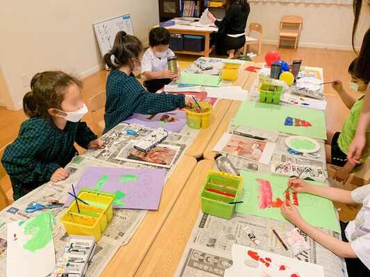お勉強が終わるとお待ちかねのおやつをみんなで食べて、パワーを補充したら、施設の中を大胆に使って様々な遊びに取り組みます。ある時は音楽演奏会、ある時は巨大すごろく大会、ある時は体操教室さながらの運動練習、ある時は芸術的感性あふれる絵画作品作り、そのほか、子どもたちが興味関心を持って取り組んでいる遊びを挙げるとキリがありません。