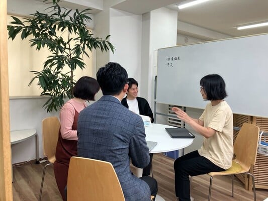 人間関係に温かみを感じない職場は楽しくないと思います。ただ働くよりも交流があるほうが働いていて楽 しいですから。 スタジオplus+では、月1回常勤のスタッフと実施するチューター面談があったり、授業の合間にも「こういう ことがあったんですけど」と相談したりしています。 反対に、「算数の問題、どういう風に教えていますか?」と自分に聞いてくれることもあって。そういう交 流があるのがいいなと思っています。