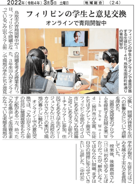 9. 神戸新聞社「オンラインで留学体験」(2020年4月)