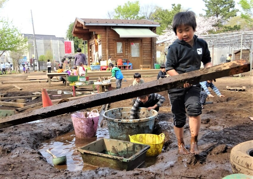 つまり、子どもが自由に遊んでいる時、子どもは自分で考えて決めています。だから、挑戦も探求も創造も主体的です。遊びの中で体験する、気持ちが通じ合った嬉しさや自分でやり遂げた達成感は、多少のことでは崩れない自己肯定感や自己有力感も育みます。またケガの痛さ、ケンカの気まずさ、失敗の悔しさも受け止めて、トライ&エラーすることにも主体的に取り組りくんでいます。