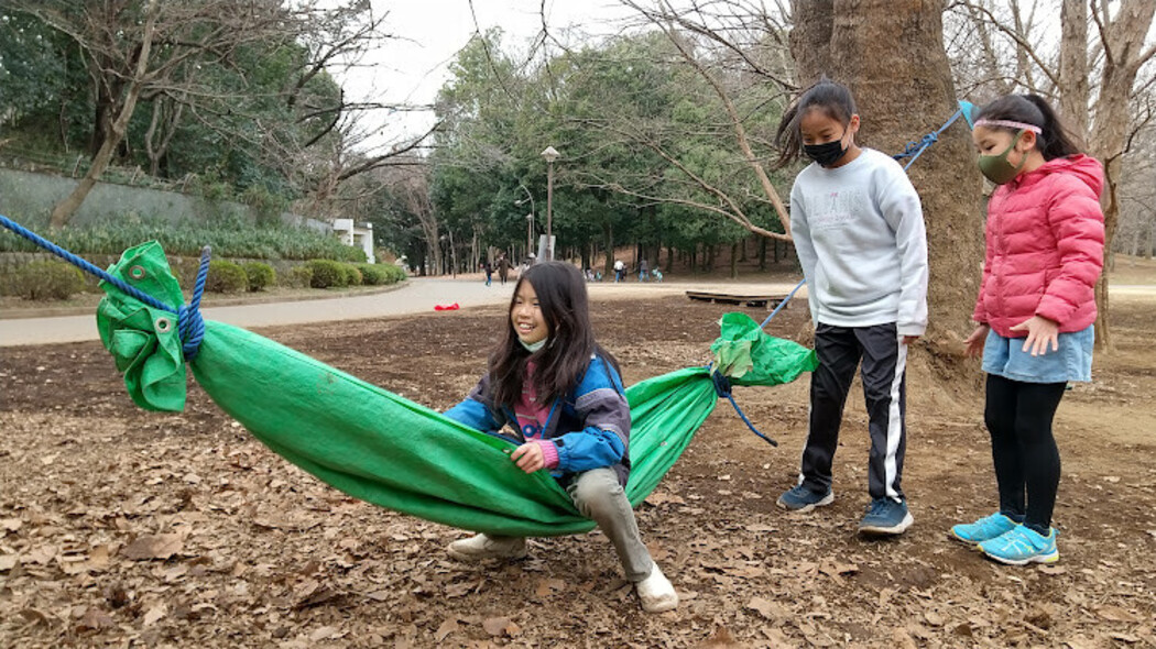 子どもはとにかくハンモックを押して―と言ってくるんですよね。で、ボランティアの1日目は押してあげていたけど、振り返りでプレーリーダーから、「ただ押してあげる人(子どもの遊び道具)になるんじゃなくて、子どもと一緒に楽しむ遊び仲間になってみて」と言われて、頭ではわかったけど、実際どうしたらいいのって2日目は色々試行錯誤でした。