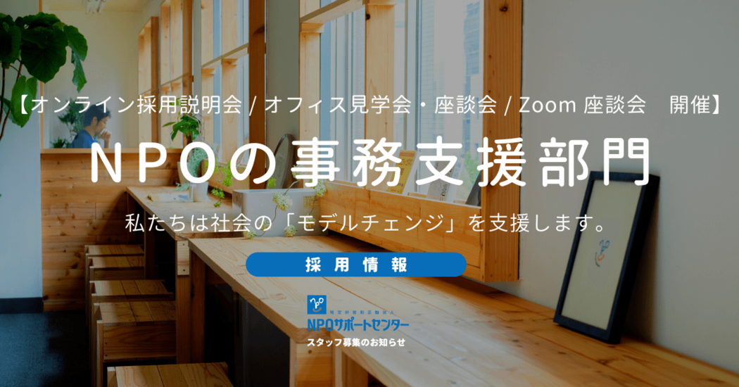 - 【NPOの事務支援部門】NPOサポートセンタースタッフ募集