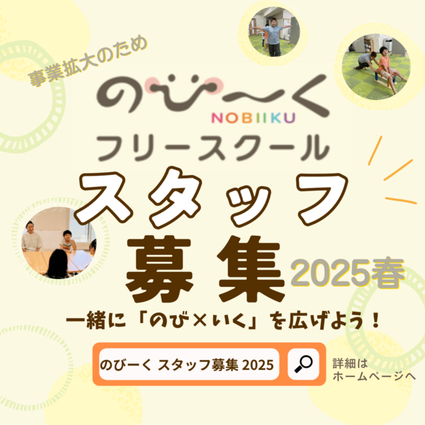 子どもたちが自分らしくのびのび育つ学びの場を提供している「のびーく」に共感し、不登校の子ども達の個性を尊重しながら成長を見守ることのできるフリースクールのスタッフ(常勤登用可能性あり)を募集します!