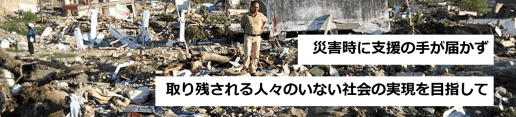 わたしたちは、地域の人々が自ら持つ社会資源を育み、外部の知見や資源を効果的に使うことで、災害時に支援の手が届かず取り残される人々のいない社会の実現を目指します。