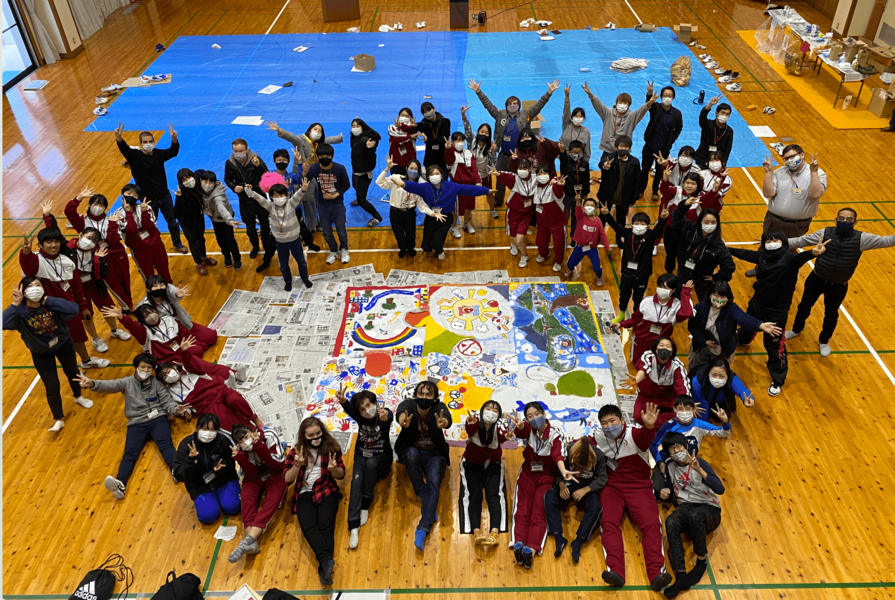 町内の⼩学5年⽣〜⼤学⽣、県内在住の外国⼈が集う国際交流イベント。