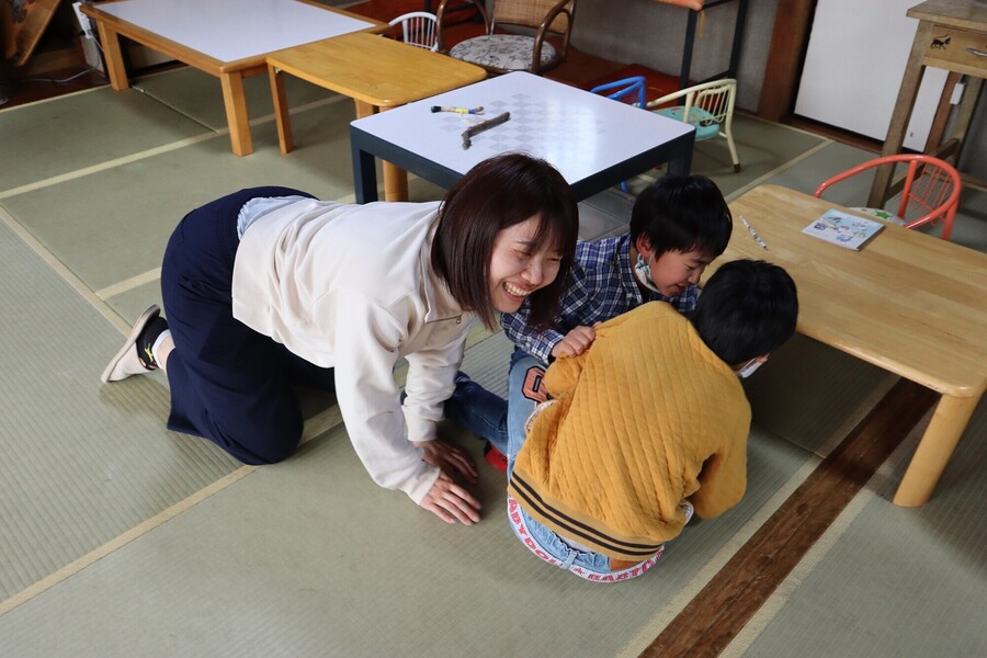 一緒になって遊ぶ、笑う、悔しがる、諦めない!すべての時間を一緒に過ごすことで、こどもたちとの距離はグッと近くなります。