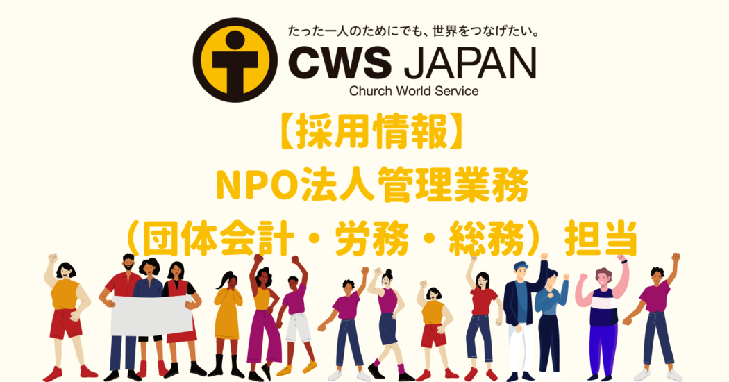CWS Japanでは、このたび管理部門強化のためにフルタイムスタッフを増やします。関西・海外在住のスタッフもおり、リモートワーク、フレキシブルな勤務も可能です。学歴不問、国際協力・非営利活動経験不問です。