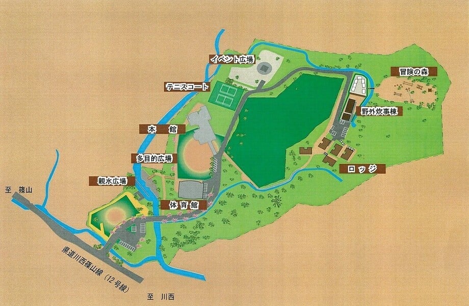 奥猪名健康の郷は約8.6ヘクタール(甲子園球場の約2.2倍)の広大な敷地の中に、宿泊施設や温泉、自然豊かな山・川はもちろん、アスレチックやキャンプファイヤー場、体育館にテニスコートなど、多種多様な遊びや運動、日頃の疲れをとる事ができる施設となっております。