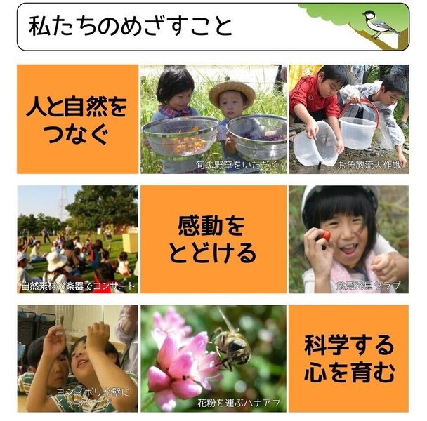 生きものと人との共生社会の実現を目指し、科学的な視点に基づいて、生物多様性の保全と環境教育の推進に貢献する社会的事業を行っています。