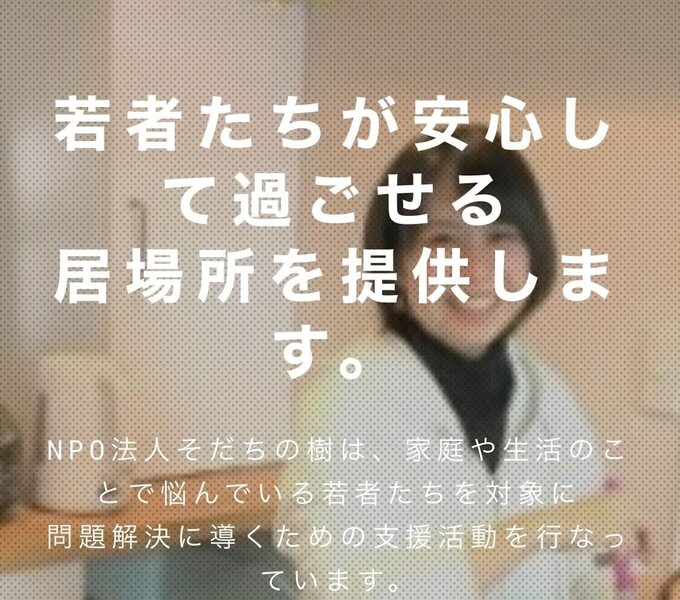 そだちの樹は、家族や生活のことで悩みを持っている若者たちを対象に、相談や生活支援を行っているNPOです。