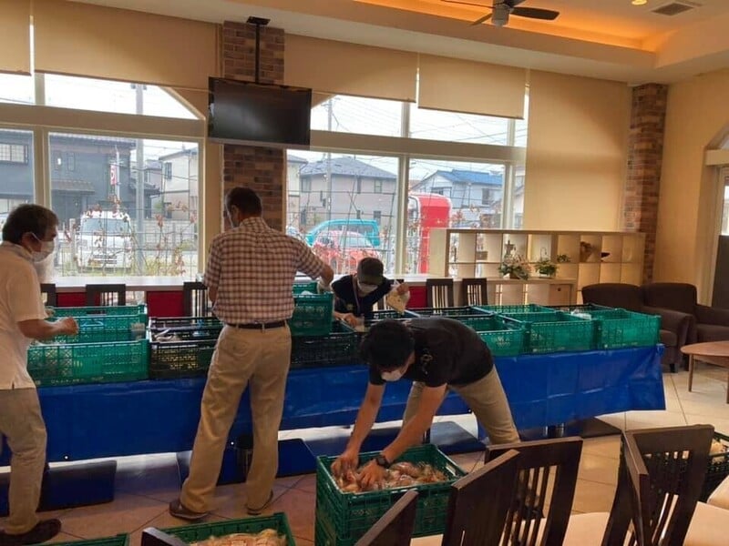 多くの親切な経営者・企業から様々な食品提供を受け、新鮮な野菜・お豆腐・牛乳・肉類・お米・麺類・お菓子類などを困窮世帯へ直接、車で届ける支援を夏から教会を拠点にスタート。