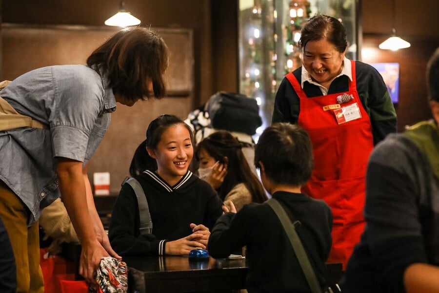 その代わりに、赤いエプロンをつけた「おもちゃ学芸員」というボランティアスタッフが、お客さんに声をかけ、遊び方を伝えながら一緒に楽しんでくれる。