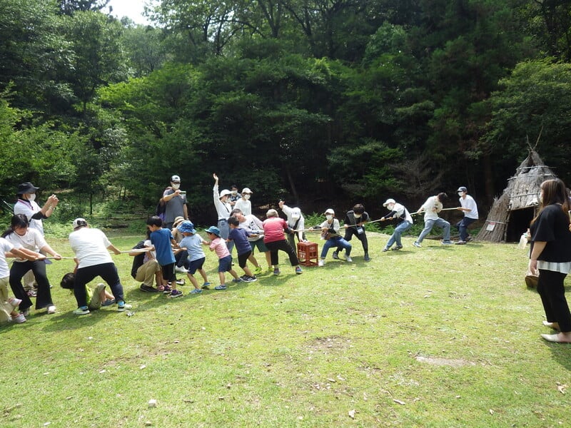 近所のお兄さん・お姉さん的存在でもあるプレイリーダーや、異年齢の子どもたち、お父さん・お母さんなど、様々な人との出会いがあることも、プレイパークの魅力の一つ。