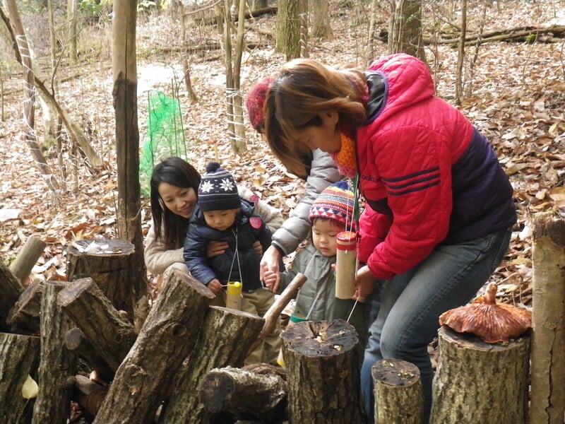 また、宝が池公園子どもの楽園で開催している「自然あそび教室」では、「あそびながら自然を学ぶ」をコンセプトに、自然の不思議や楽しみ、自然との付き合い方を身につけてもらうことを目指しています。