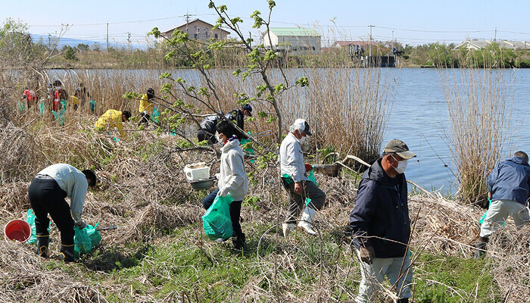河北潟では毎年、ゴミ拾い活動が行われていますが、河北潟だけではなく、つながる川や水路のゴミも減らし、また河北潟から海に流れていくゴミを減らすため、活動を続けています。