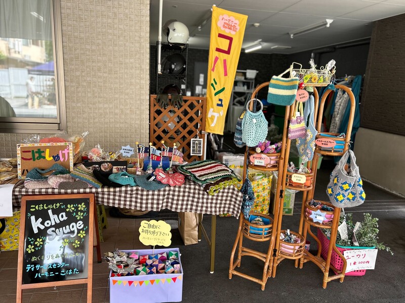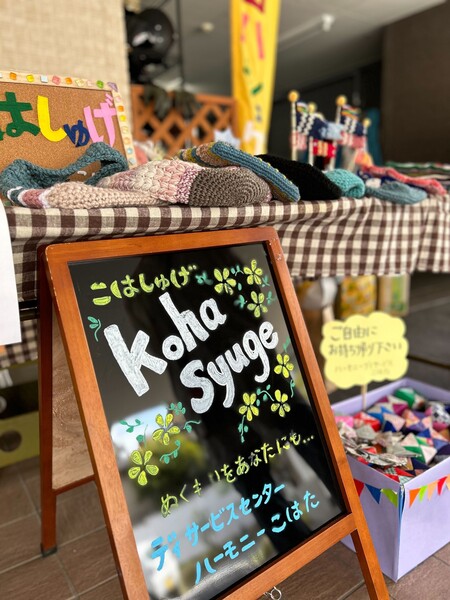 宇治市木幡にあるデイサービスセンターハーモニーこはたでは、手芸が好きなデイサービスご利用者が作った作品「kohasyuge(コハシュゲ)」を、地域の方へ向けて販売しています。