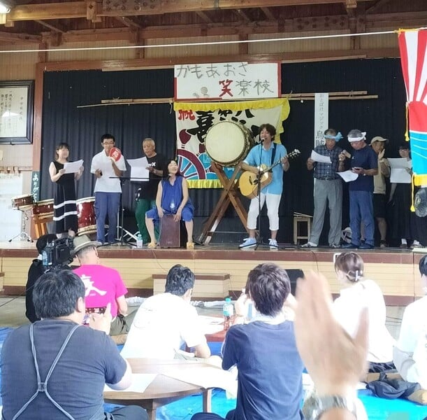 男鹿市・加茂青砂(かもあおさ)で暮らし体験を提供する「かもあおさ笑楽校(しょうがっこう)」。「耕作放棄地を開墾できます」をキャッチフレーズに、加茂青砂に想いを寄せてくれる人達と「境界なき土起こし団」を結成し、昨年活動を始めました。見晴らしのいい、海の見える畑で、たくましく育った雑草さえも緑肥という味方につけ、この秋、初収穫を迎えました。ジャガイモは、男鹿の郷土料理・アンプラ餅鍋に。サツマイモは、炊き込みご飯に。お腹を満たした後は、森の哲学者・内山節さんの講演を聞いてみんなで学ぶ機会。そして昨年CDリリースも果たした加茂青砂の応援歌「加茂の青砂でダダダコわっしょい」を歌って踊ってお祝いします。