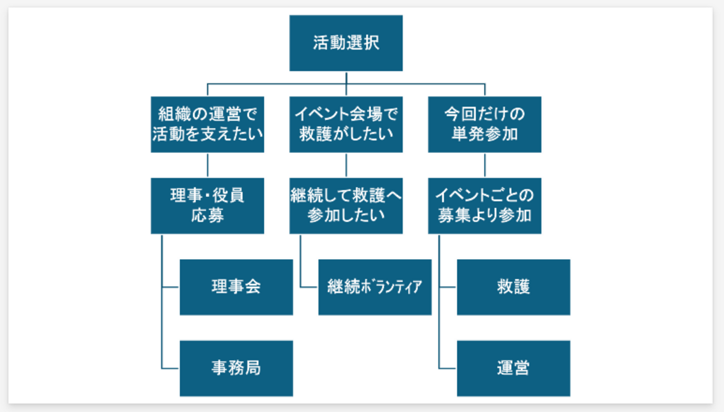 任意団体として、各種イベントにおける救護活動をはじめリスクマネジメントを行う団体として設立。