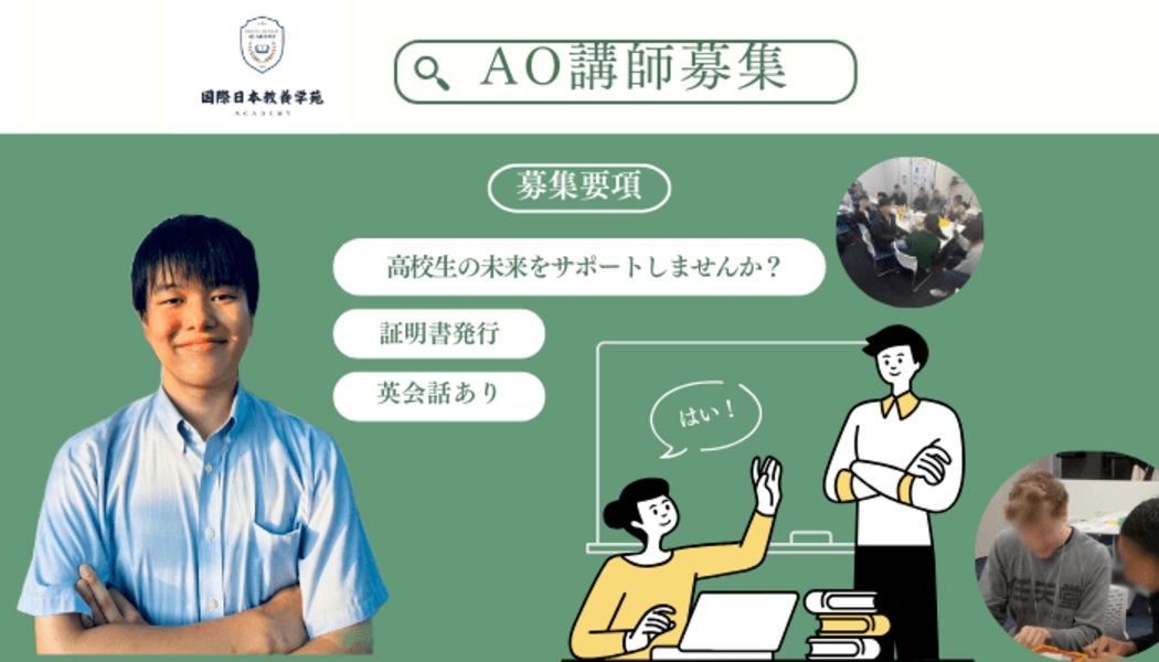 社会課題への実践的アプローチを学ぶ国際日本教養学苑。総合型選抜での難関大学合格実績を持つ私たちと共に、次世代リーダーの育成に携わる情熱ある講師を募集します。教育への熱意をお持ちの方をお待ちしています。