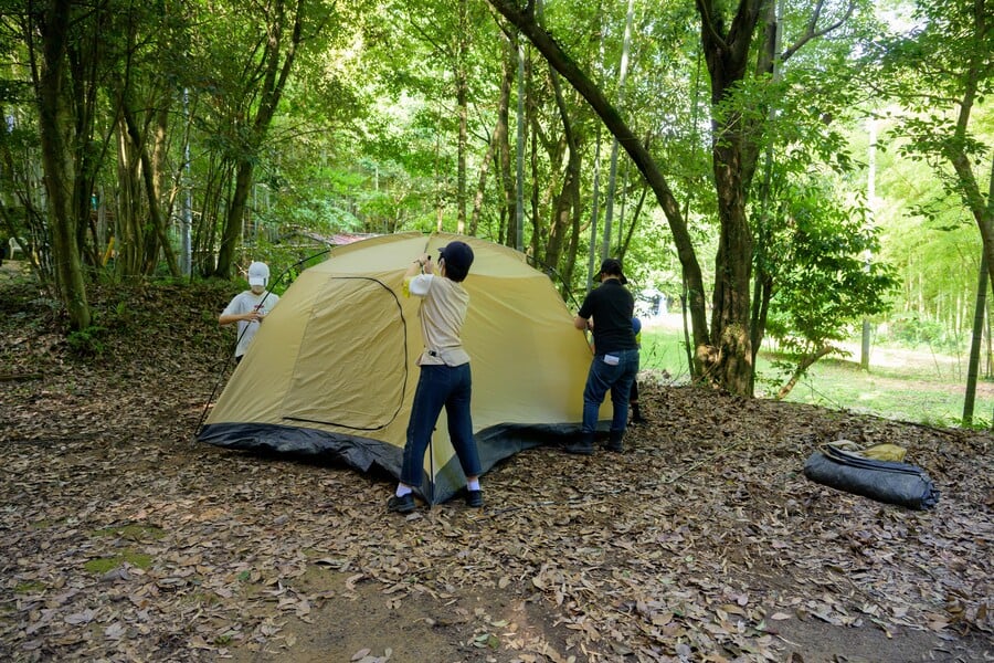 午後・・・ 勉強の時間、遊びの時間、テント設営、夕べのつどい、シャワー、就寝
