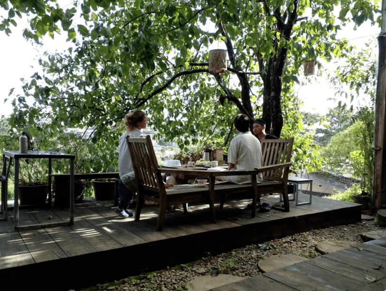 広々とした共用エリアでは、読書やおしゃべり、長い一日の終わりのリラックスなど、ゆったりとした時間をお過ごしいただけます。家の周囲には様々な果樹が生い茂る緑豊かな庭園があり、新鮮な空気と、庭で採れた旬のフルーツをお楽しみいただけます。