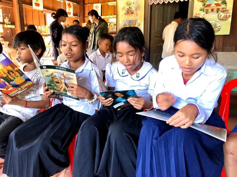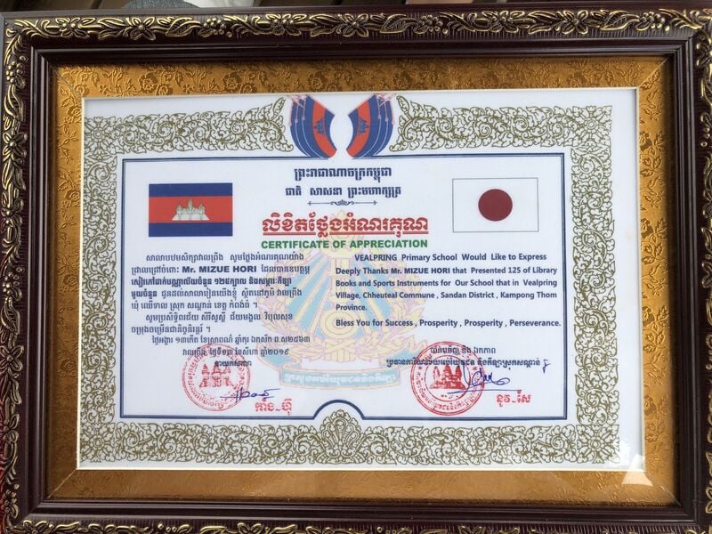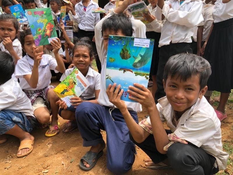 【あなた自身が支援者】カンボジアの貧困州の小学校を訪問し、図書を届け、子どもたちと交流する喜びと感動あふれる支援活動です。本の一冊一冊に、ご支援者のお名前が入ります。感謝状も頂きます。